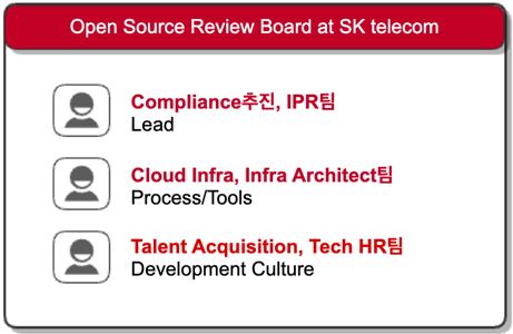 일반적으로 기업의 오픈소스 관리 체계 구축을 위해서는 아래의 역할이 필요합니다.