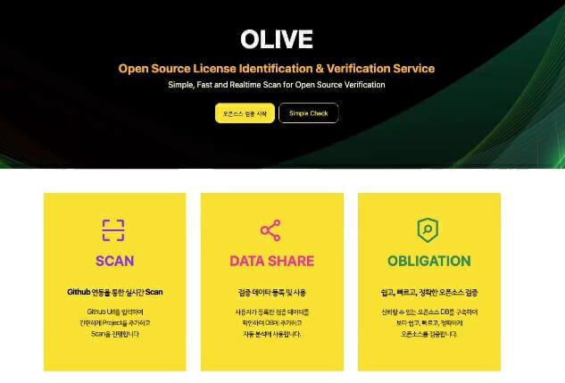 올리브는 복잡한 오픈소스 라이선스 관리를 자동화하는 개발 지원 도구다. 자동으로 소프트웨어를 분석해 오픈소스를 사용했는지, 오픈소스 사용 조건이나 의무사항 등을 목록별로 정리해 제공한다.