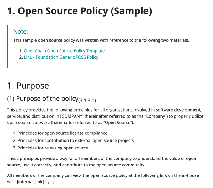 1.a : Do you have a documented policy that governs open source license compliance of the Supplied Software distribution (e.g., via training, internal wiki, or other practical communication method)?