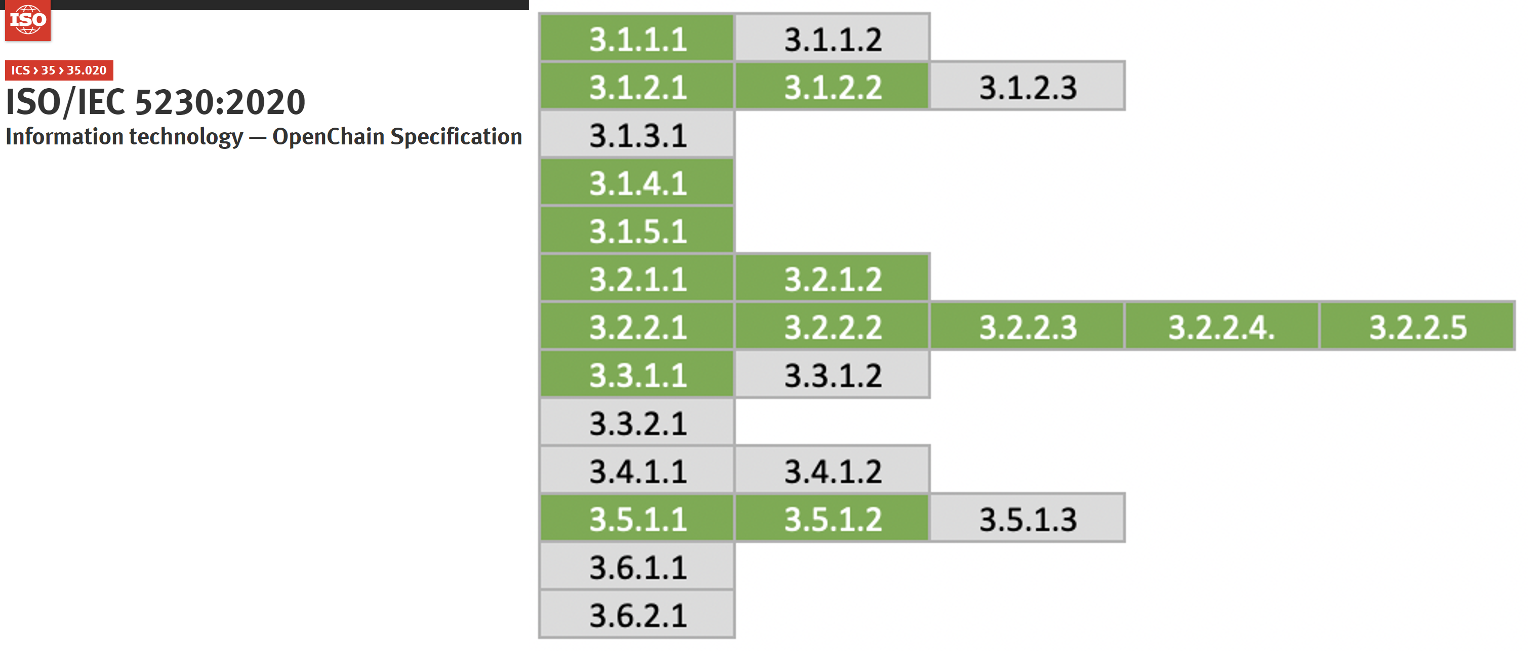 If you build the process up to this point, you will comply with the ISO/IEC 5230 requirements as follows.