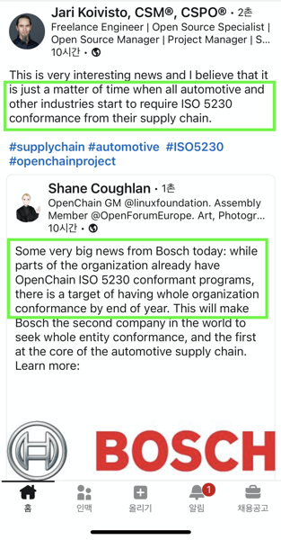 Also, in July 2021, automotive and industrial technology company Bosch declared that all group companies would have programs complying with ISO/IEC 5230 by year’s end. The industry predicts that it is only a matter of time before all automakers and other industries begin requiring ISO/IEC 5230 within the software supply chain.