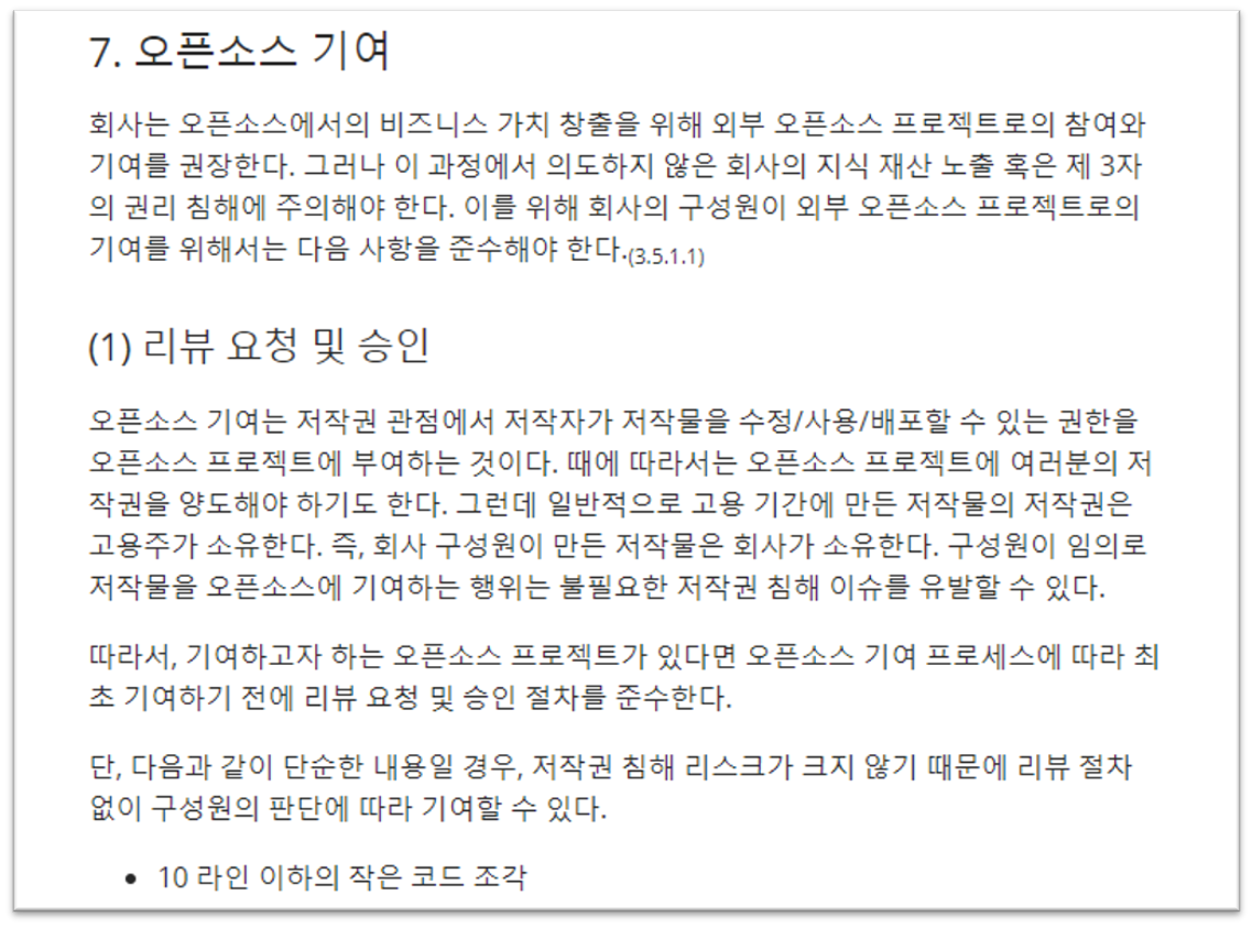 - 3.5.1.1 문서화된 오픈소스 기여 정책