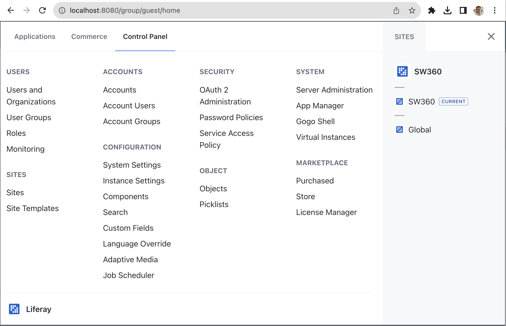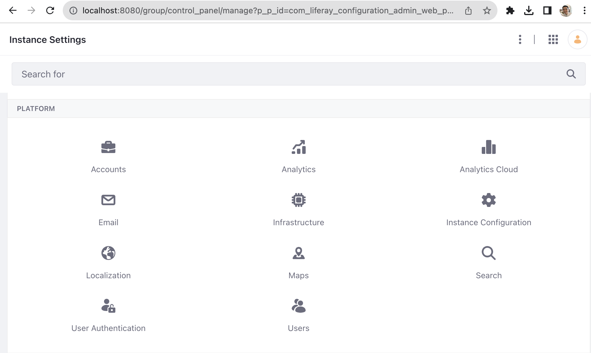 그리고, 다시 Control Panel탭에서 CONFIGURATION > Instance Settings을 선택한다. 그러면, PLATFORM메뉴를 볼 수 있다.