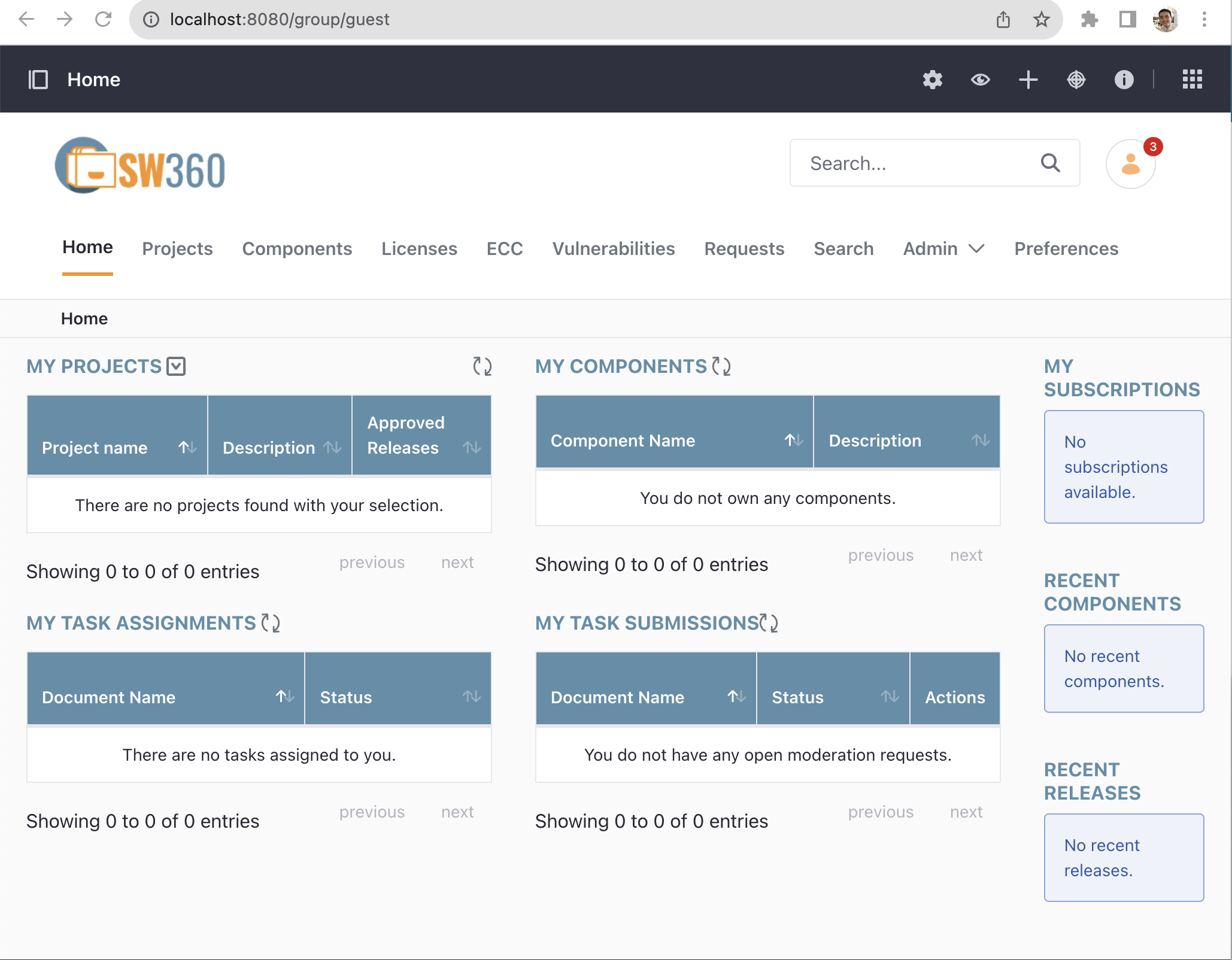 그럼 아래와 같이 Welcome to SW360! 화면에 진입한다.