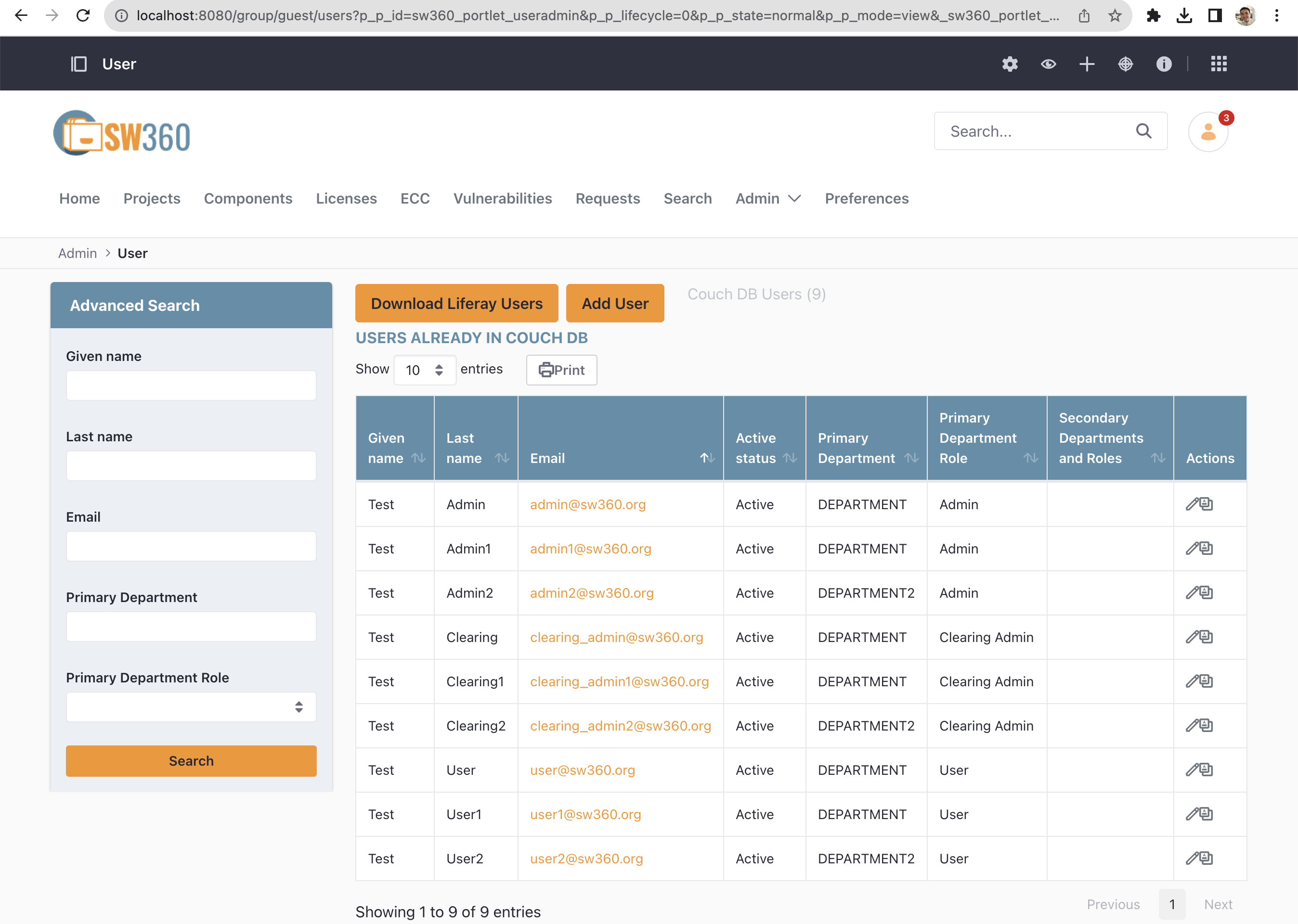 SW360은 웹 기반의 UI를 제공하며 주요 기능은 다음과 같다.