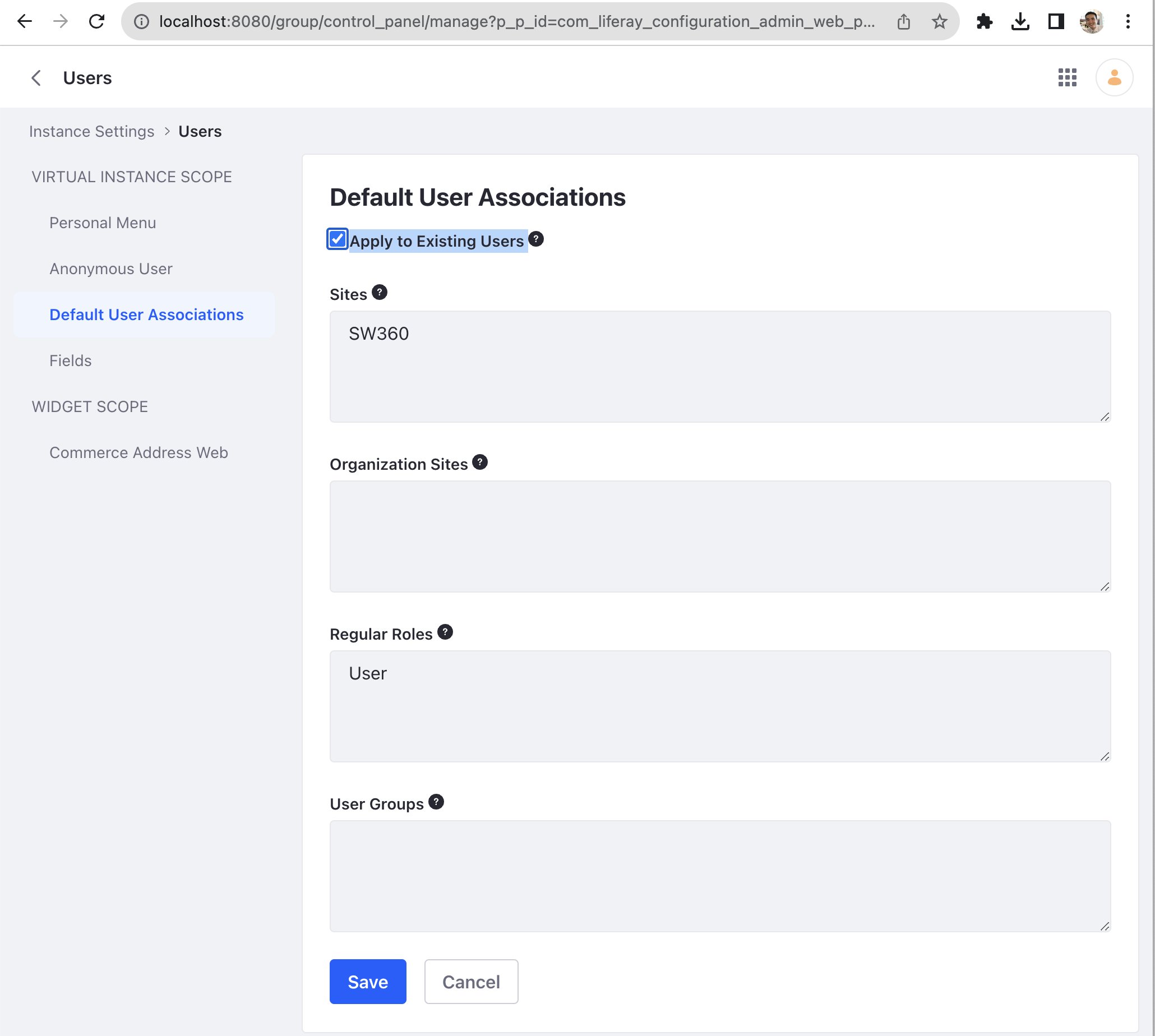 거기서 Users를 선택한다. 그리고, Default User Associations 메뉴로 진입하고, Apply to Existing Users를 체크한다. 그리고 Save한다.