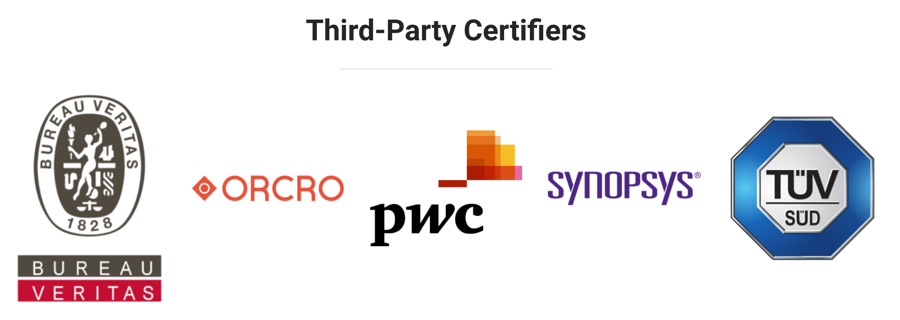 2021년 10월 기준, OpenChain의 공인 타사 인증 기관은 ORCRO8, PWC9, TÜV SÜD10, Synopsys11, Bureau Veritas12이다.